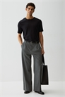 Футболка из ребристого трикотажа средней плотности с круглым вырезом и прямым покроем. Зауженный крой, который облегает контуры тела, создавая приталенный силуэт.