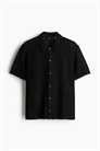 Рубашка с короткими рукавами из трикотажа пуантель с вязаным узором. Отложной воротник, пуговицы спереди и прямой подол. Регулярный крой для комфортной носки и классического силуэта.