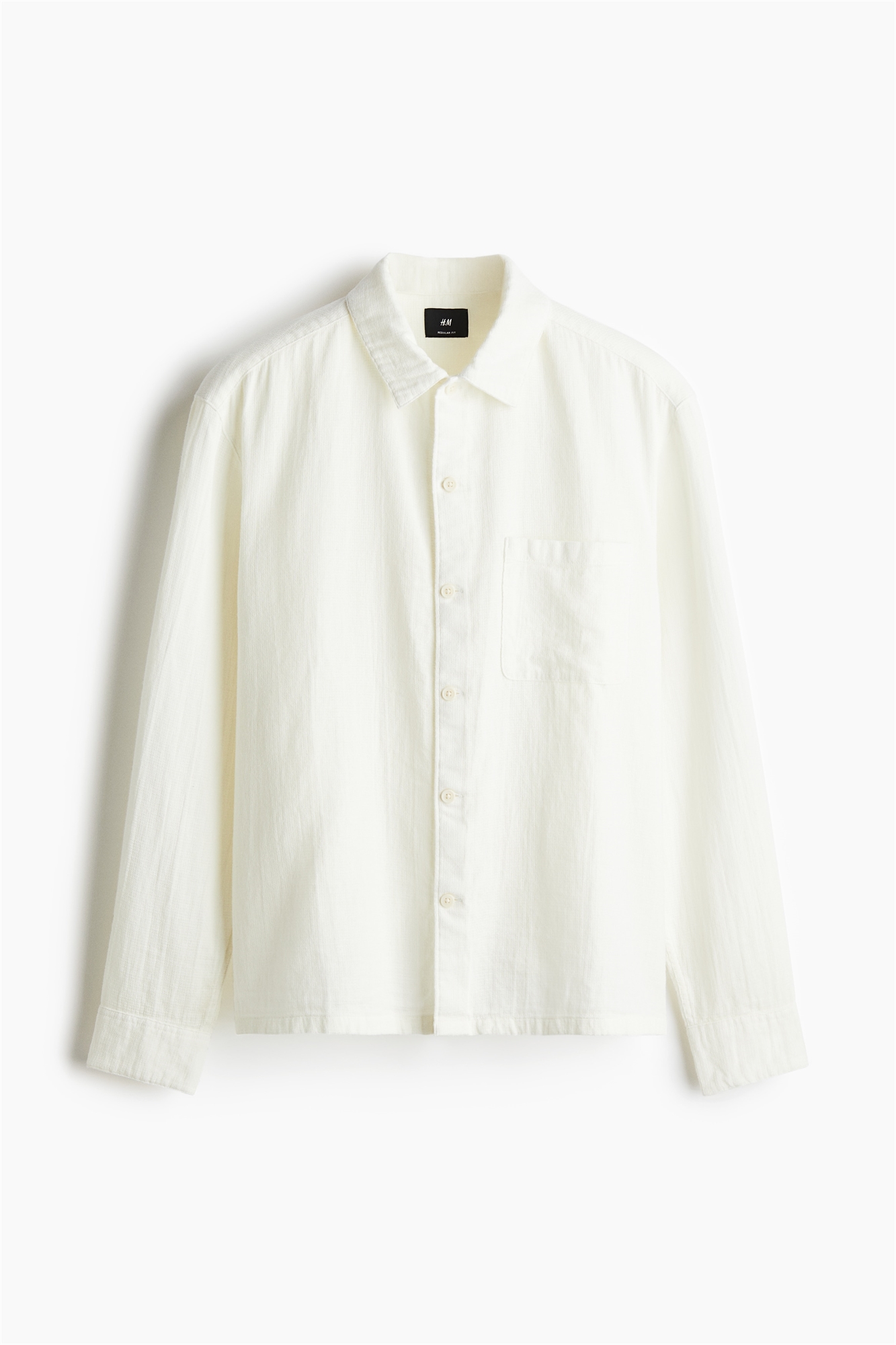 Рубашка из фактурного хлопкового полотна с отложным воротником, классическим передом, ярмом сзади и нагрудным карманом. Длинные рукава с манжетами на пуговицах и разрезом. Подол прямого кроя. Регулярный крой для комфортной носки и классического силуэта.
