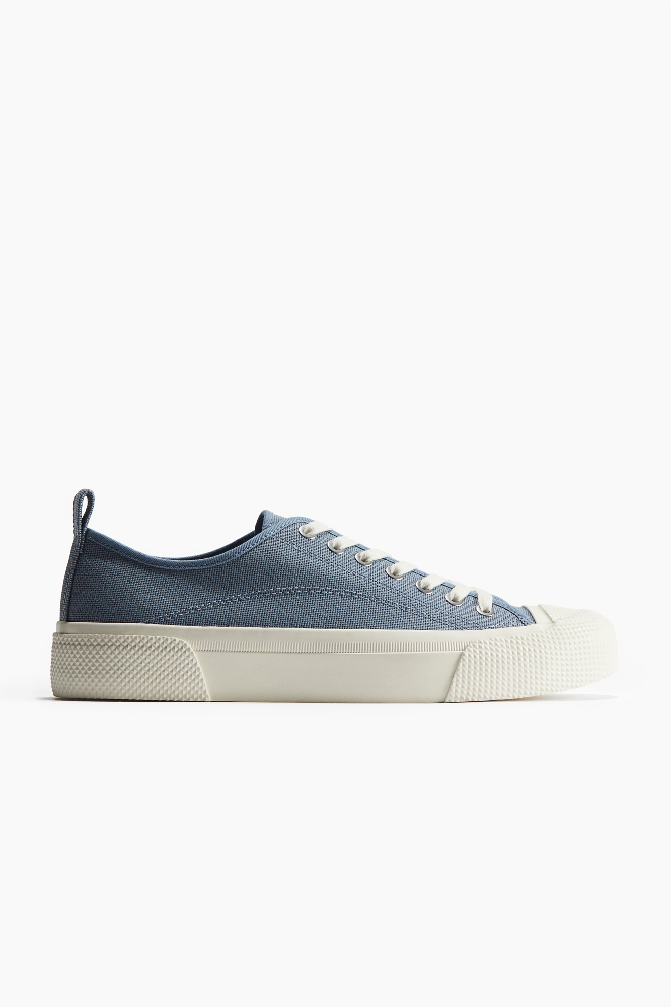 Кроссовки из хлопкового канваса со шнуровкой спереди и петлей сзади. Подкладка и стелька из холста, резиновая подошва с рисунком. Высота подошвы 3,1 см.