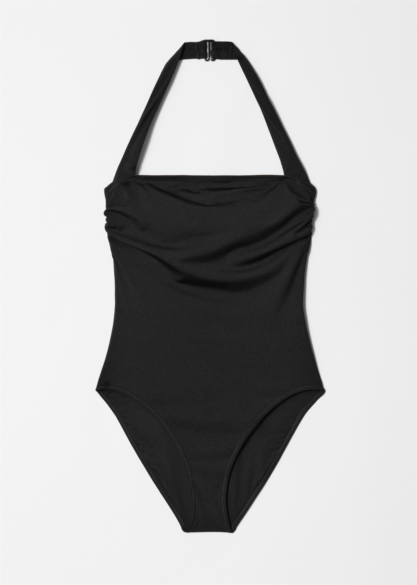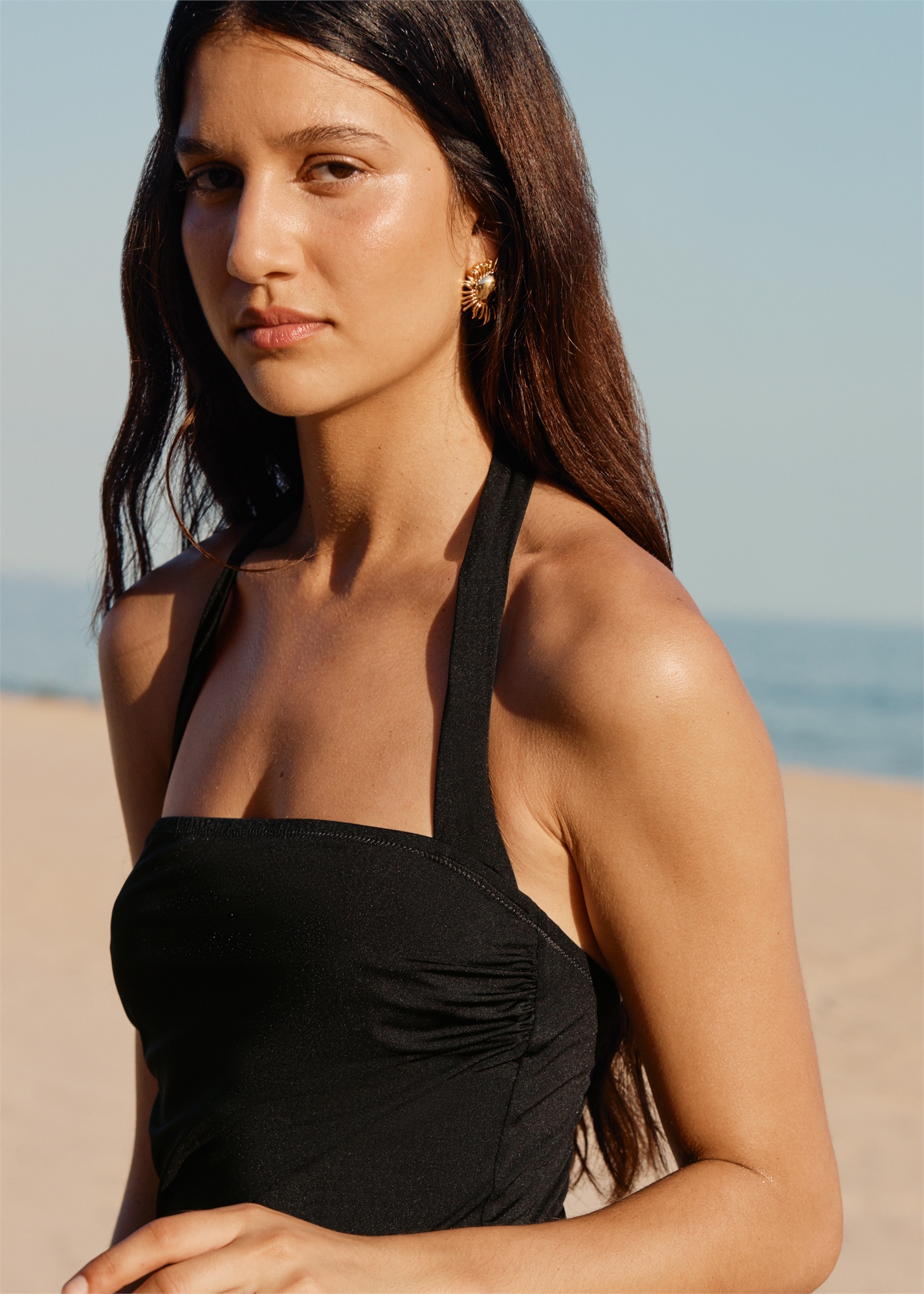 Купальник с вырезом под грудью, выполненный в актуальном силуэте с прямым вырезом и едва заметными складками. Спина с низкой посадкой, легкая подкладка для дополнительной поддержки и регулируемая застежка-крючок сзади. • Съемная подкладка