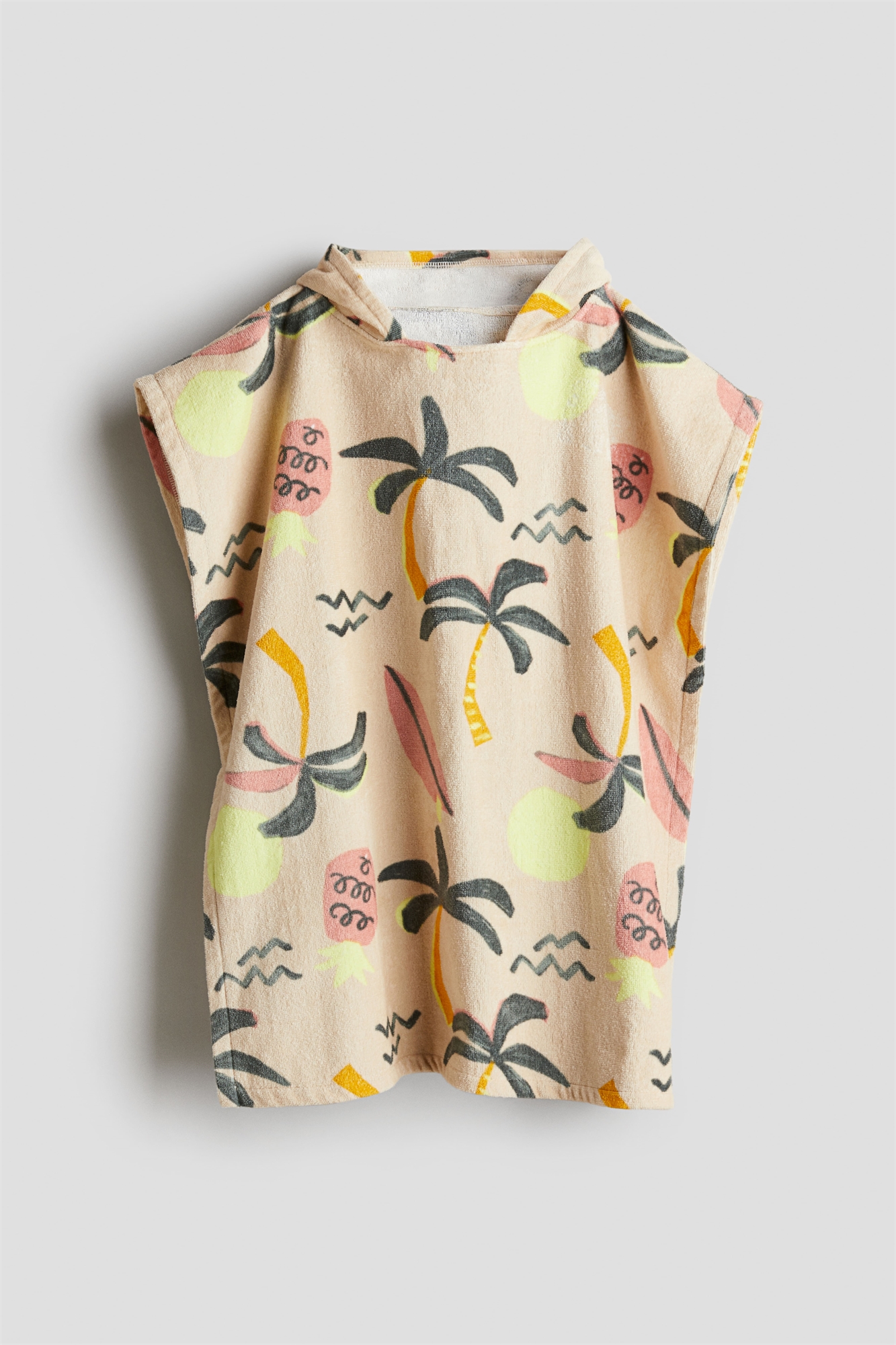 Полотенце-пончо с капюшоном из мягкой хлопковой махры с узорчатым велюром на внешней стороне.
