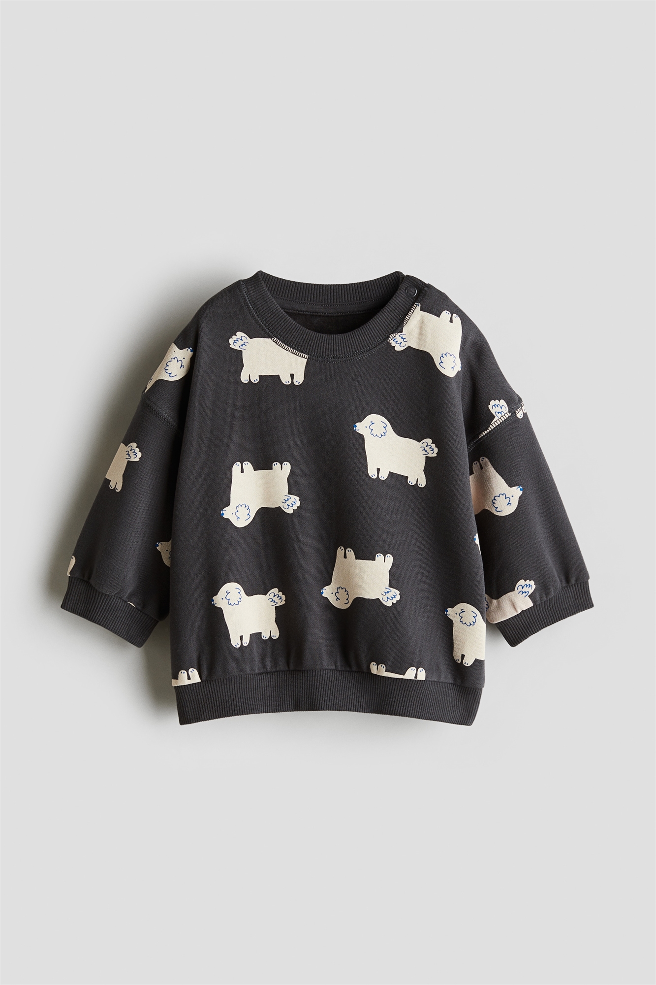 Топ из принтованной толстовки с мягкой ворсистой внутренней стороной. Круглый вырез с ребристой отделкой, застежки с одной стороны (кроме размеров 2-4Y), спущенные плечи и длинные рукава. Ребристые манжеты и подол.