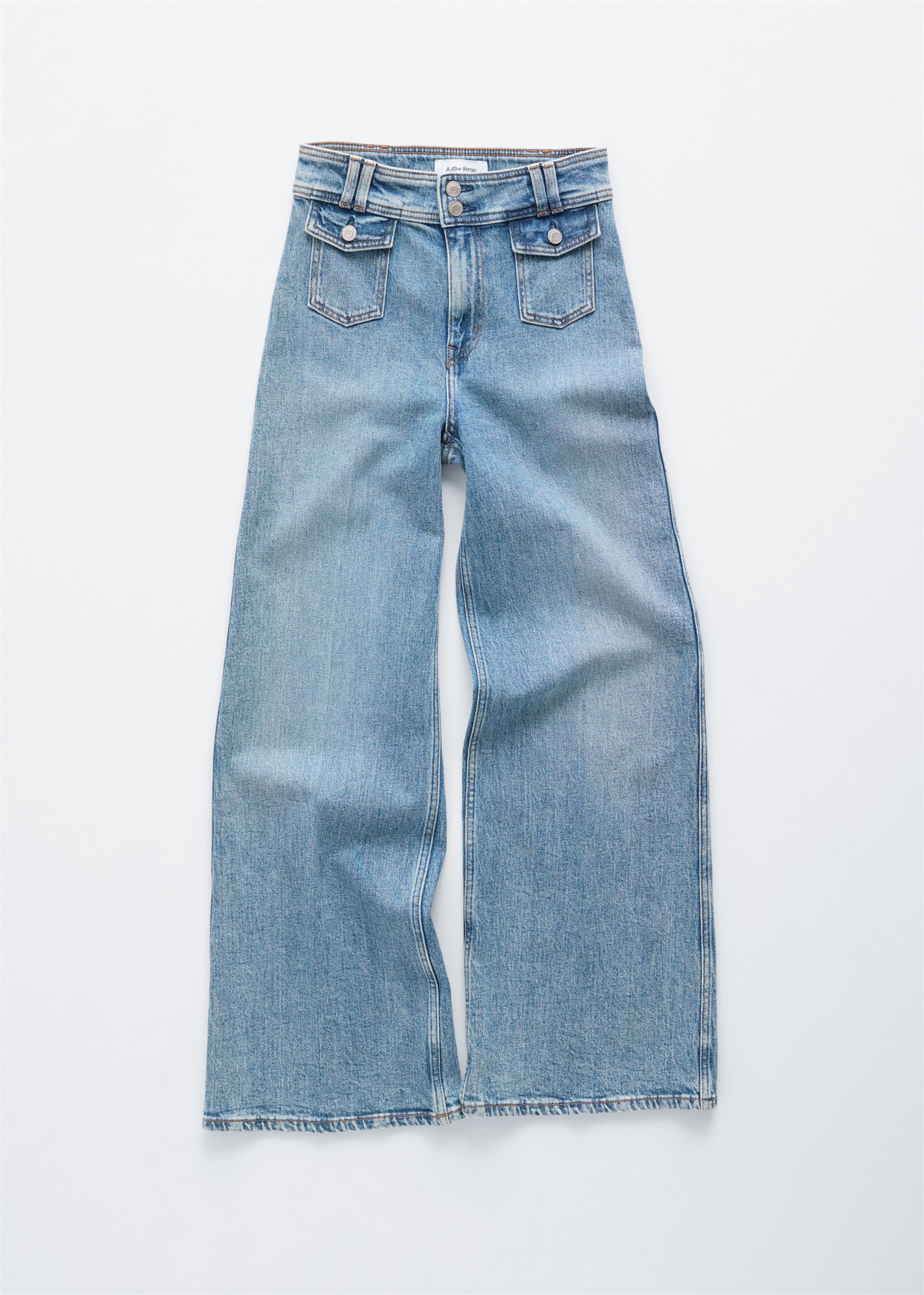 Джинсы с высокой талией и расклешенными штанинами, отделанными складками от пресса, и двумя накладными карманами на пуговицах спереди. • Regular fit • Петли для ремня • Ширинка на молнии с двумя пуговицами • Два накладных кармана сзади • Полная длина Длина по линии бедра: 79,7 см / 31,4" (EU 38 / UK 10 / US 6)