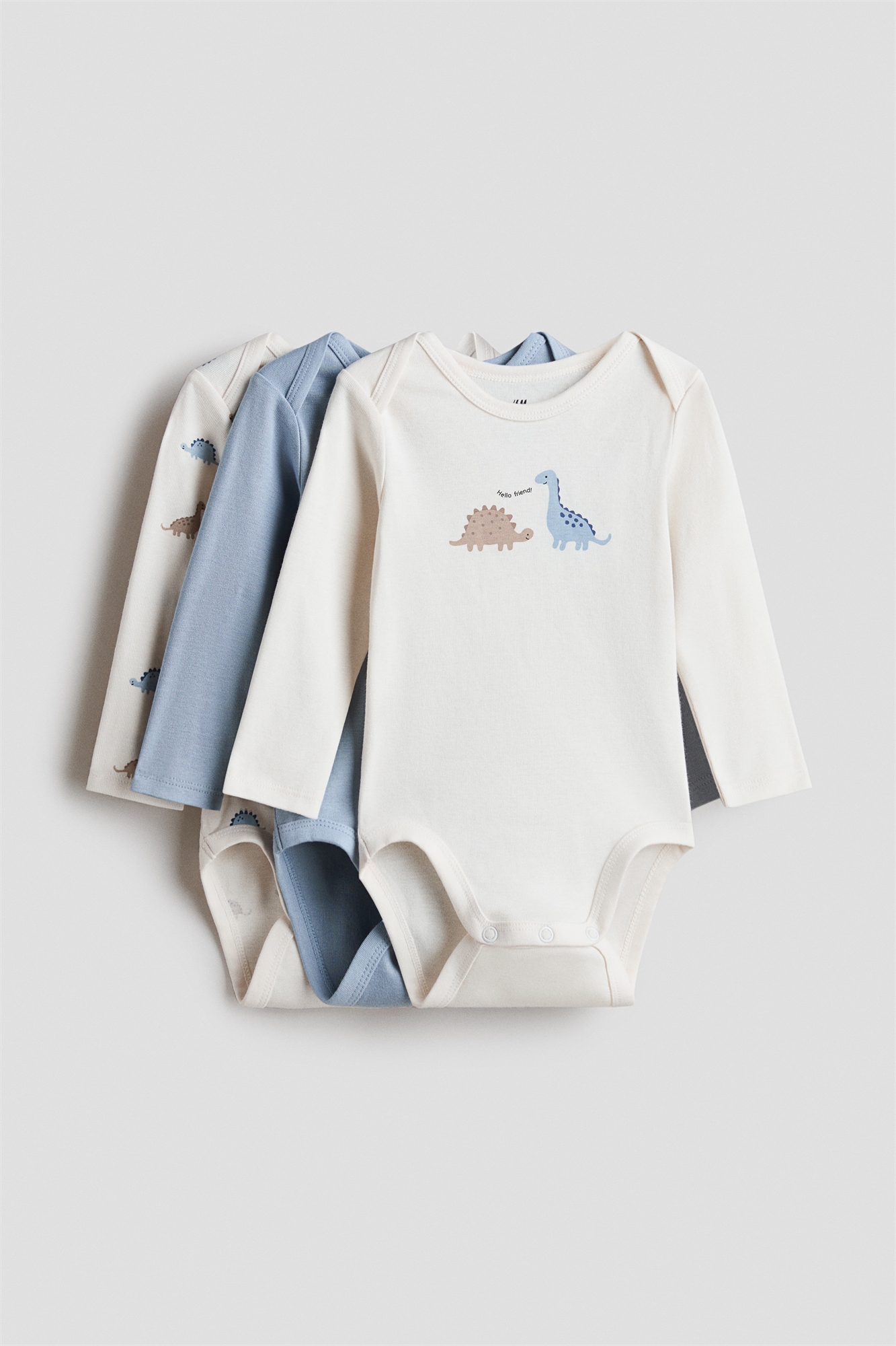 Боди с длинными рукавами из мягкого хлопкового джерси с набивным рисунком, горловина конвертом для плавного одевания и застежки внизу для удобства переодевания.