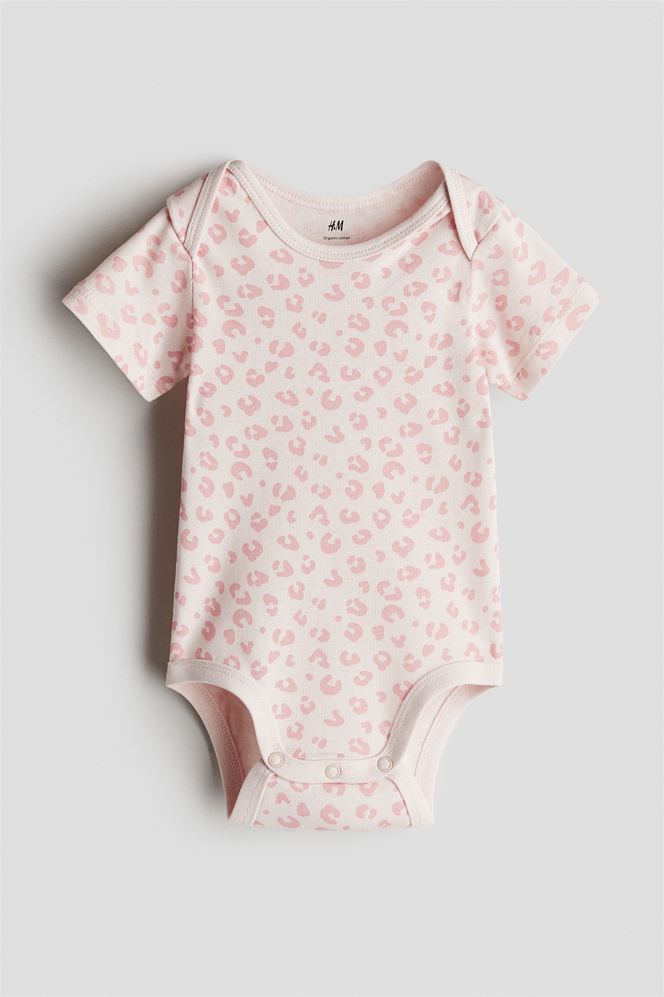 Боди с короткими рукавами из мягкого хлопкового джерси с набивным рисунком, горловина "конверт" для плавного одевания и застежки внизу для удобства переодевания.