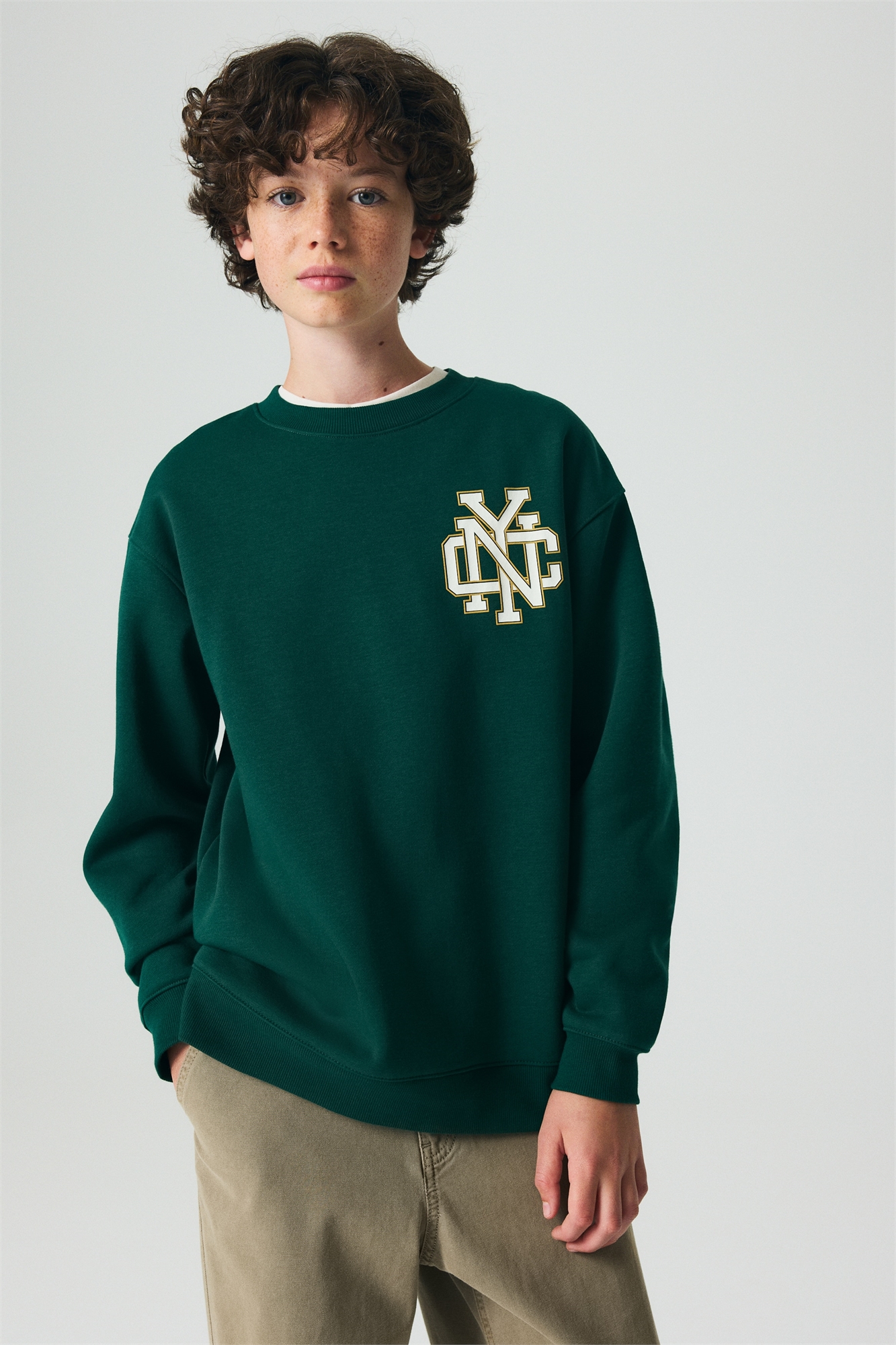 Топ из толстовочной ткани с мягкой начесом внутри и принтом. Круглый вырез с ребристой отделкой, спущенные плечи и длинные рукава. Ребристые манжеты и подол.