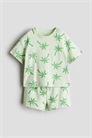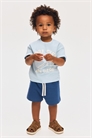 Комплект из футболки из хлопкового джерси и пары шорт из легкого хлопкового свитшота. Футболка с круглым вырезом с ребристой отделкой, застежками с одной стороны (кроме размеров 2-4Y) и низко опущенными плечами. Шорты с эластичным утягивающим поясом.