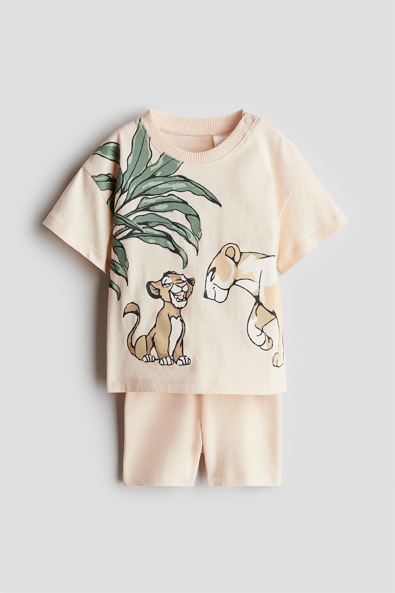 Комплект из топа и велошорт из мягкого хлопкового джерси. Топ с круглым вырезом с ребристой отделкой, застежками на одном плече (кроме размеров 2-4Y) и принтом спереди. Спущенные плечи и короткие рукава. Велошорты с регулируемой резинкой на талии.
