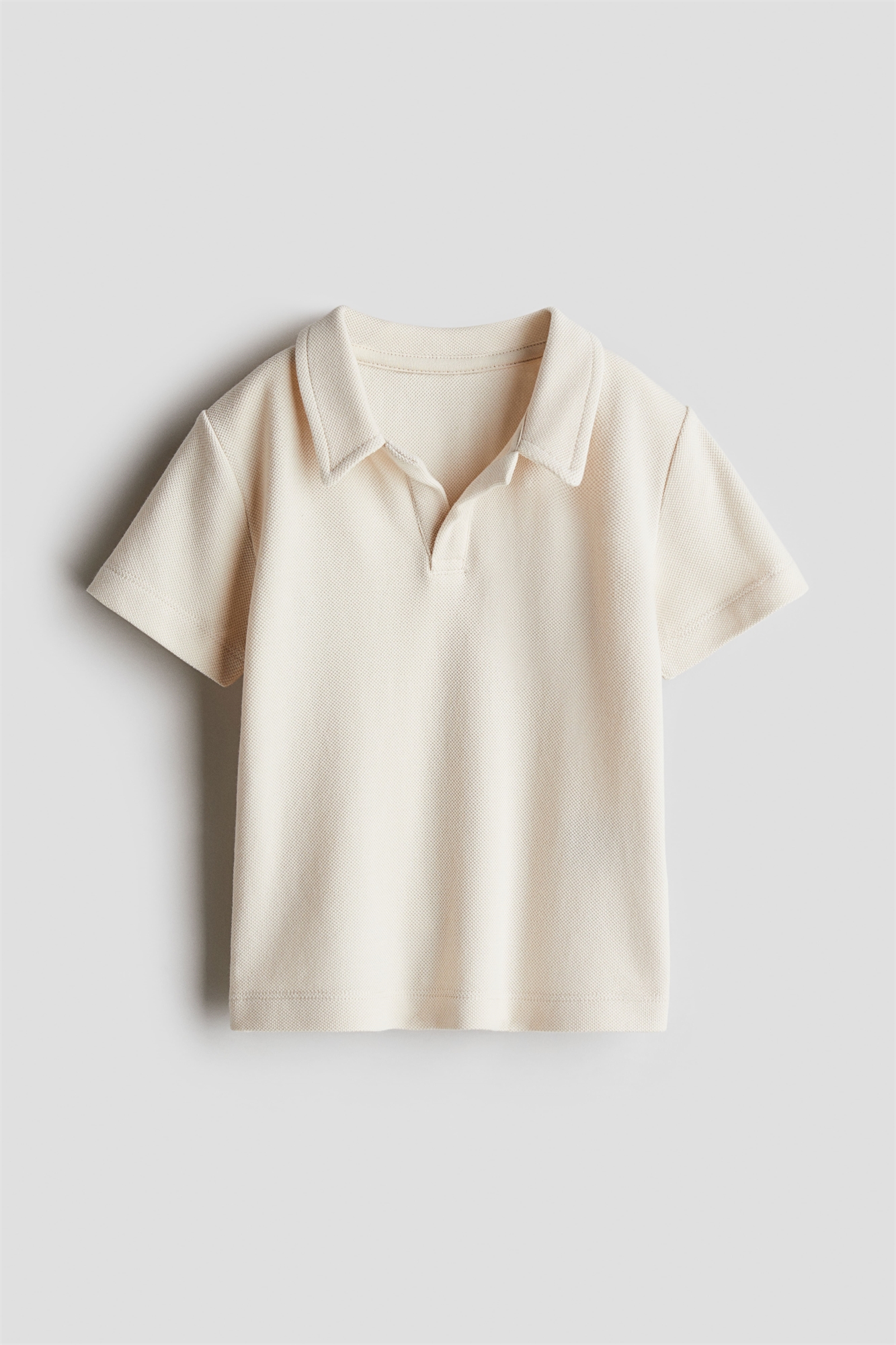 Рубашка-поло из хлопкового пике с воротником и открытой застежкой спереди. Спущенные плечи и короткие рукава.