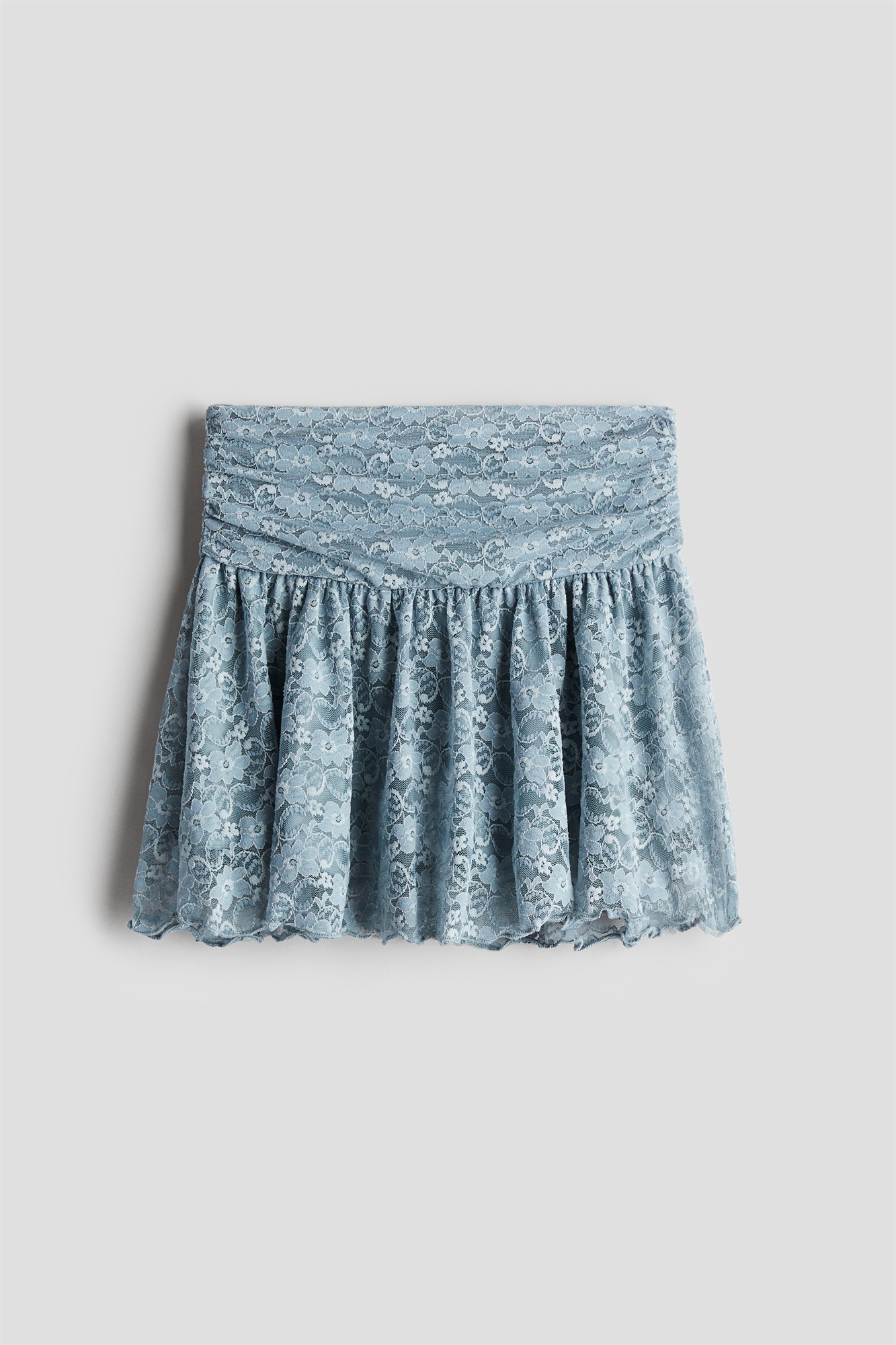 Кружевная юбка со скрытым эластичным поясом и швом в сборку для придания объема. Подкладка из джерси.