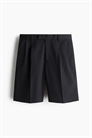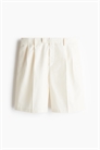Шорты-бермуды из саржи из смеси лиоцелла и хлопка с ширинкой на молнии и удлиненным поясом с потайной застежкой на крючок и пуговицу. Карманы в боковых швах, накладные задние карманы и ножки со складками. Свободный крой для непринужденного, но не слишком большого силуэта.