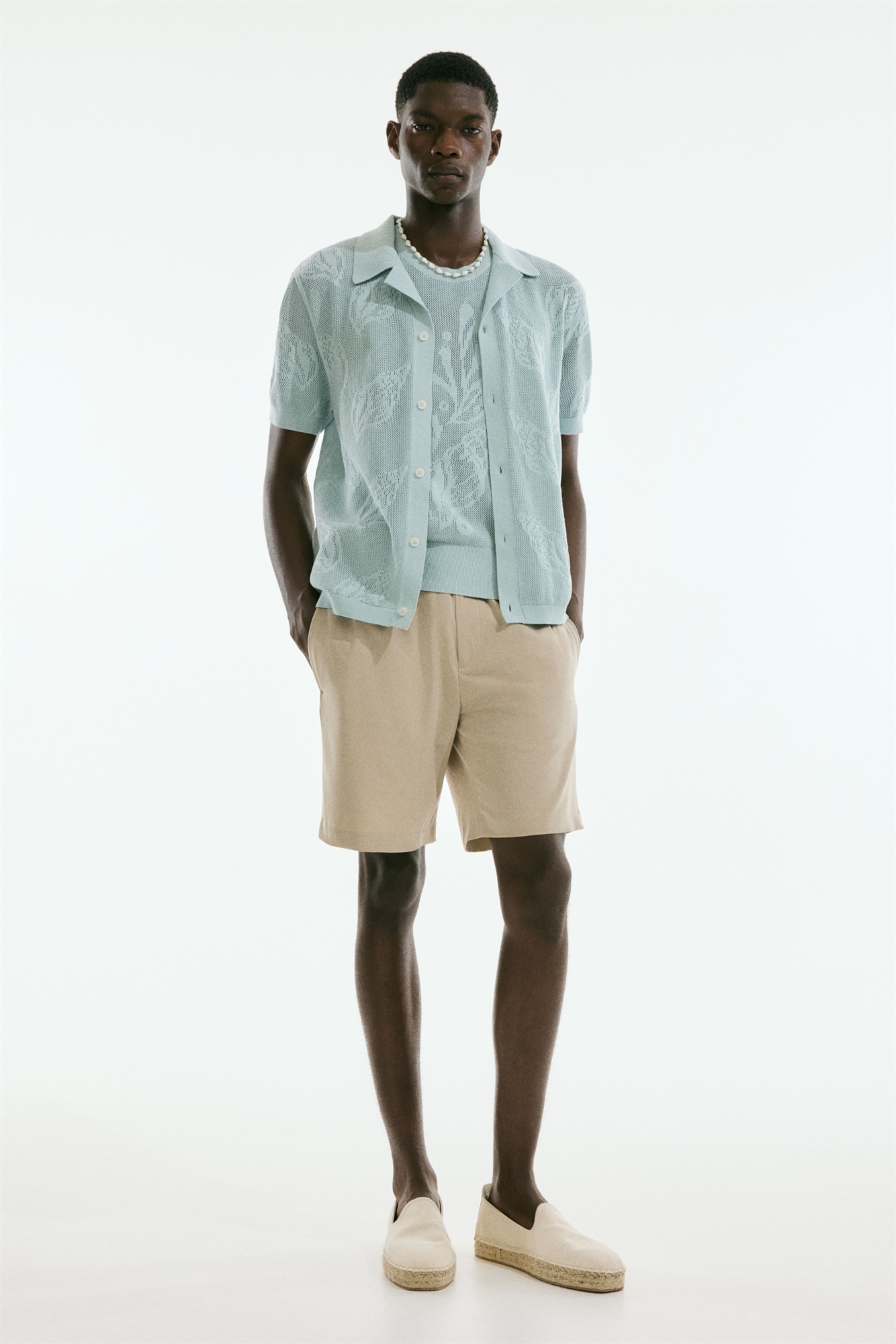 Шорты из мягкого полотна с эластичным материалом и скрытым шнурком на талии, неброскими боковыми карманами и втачными задними карманами. Расслабленный крой для непринужденного, но не чрезмерного силуэта.