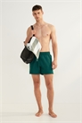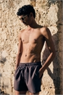 Шорты для плавания из тканого материала с эластичным покрытием и завязкой на талии, боковыми карманами, задним карманом с застежкой на крючок и петлю и небольшим разрезом по бокам. Внутренние шорты из сетки.