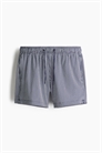 Плавки-шорты из просака с эластичным материалом и завязкой на талии, боковыми карманами, задним карманом с застежкой на крючок и петлю, а также небольшим разрезом по бокам. Внутренние шорты из сетки.