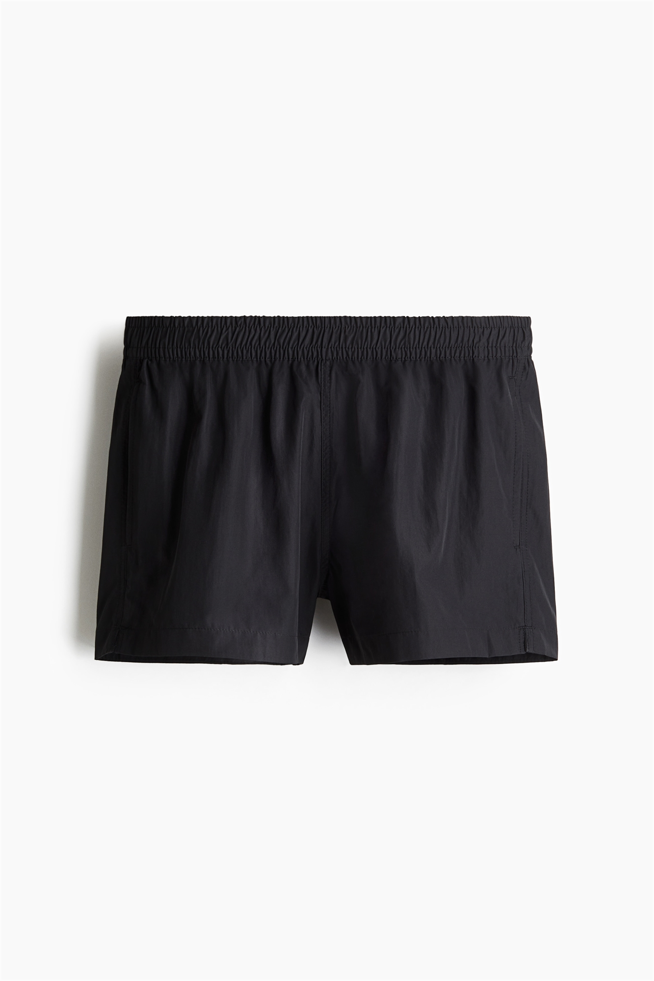 Шорты для плавания из тканого материала с эластичным покрытием и скрытым шнурком на талии, боковыми карманами и небольшим разрезом по бокам. Внутренние шорты из сетки.