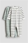 Спальные костюмы из супермягкого хлопкового джерси с застежками на кнопках спереди и вдоль одной штанины для удобства переодевания. Длинные рукава с манжетами и полные ножки с противоскользящими накладками (в размерах 0-6M противоскользящие накладки отсутствуют).