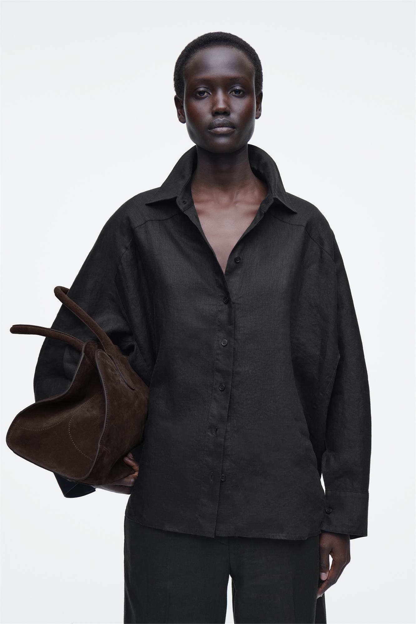 Эта черная рубашка из льна, естественно легкого, воздушного и свежего, станет прелюдией к летней погоде. Она выполнена в классическом квадратном крое, имеет заостренный воротник, рукава реглан и двойные манжеты. Наши стилисты советуют надевать ее поверх майки, когда температура повышается. Регулярный крой Застежка на пуговицах Переработанный лен изготавливается из отходов прядильного производства или отходов раскроя ткани в процессе производства. Отходы механически перерабатываются и прядутся в новую пряжу Состав: 70% лен, 30% переработанный лен. Без учета отделки / Машинная стирка Длина по спинке для размера EU 36 составляет 67,9 см / Модель носит размер EU 36