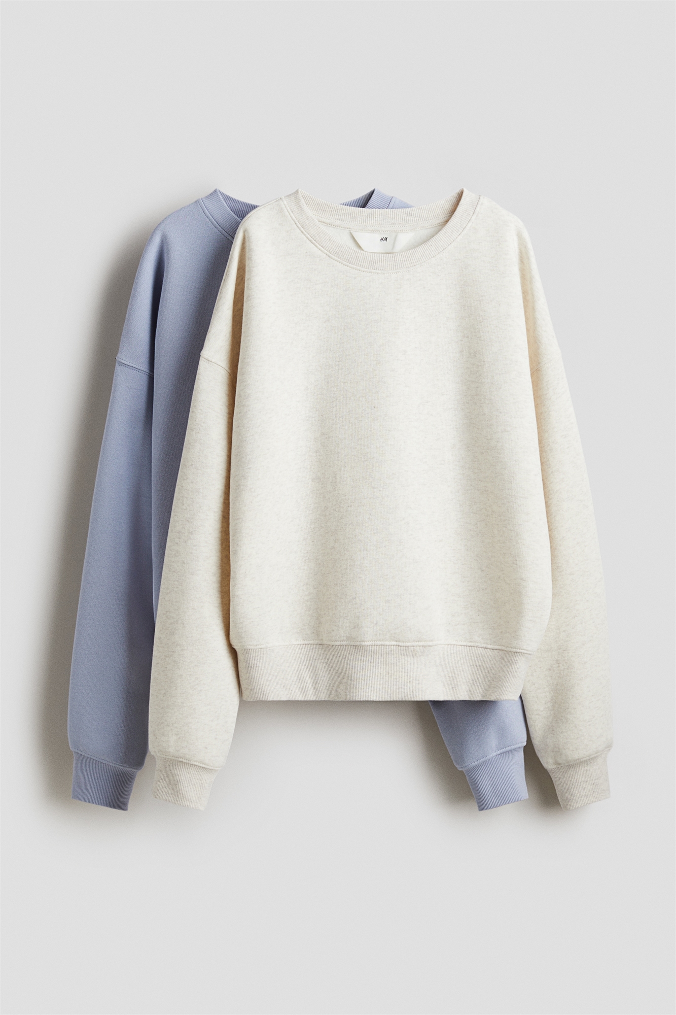 Топы с длинными рукавами из толстовочной ткани с мягкой начесом внутри. Круглый вырез в рубчик, спущенные плечи, манжеты и подол в рубчик.