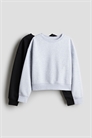 Топы с длинными рукавами из толстовочной ткани с мягкой начесом внутри. Круглый вырез в рубчик, спущенные плечи, манжеты и подол в рубчик.