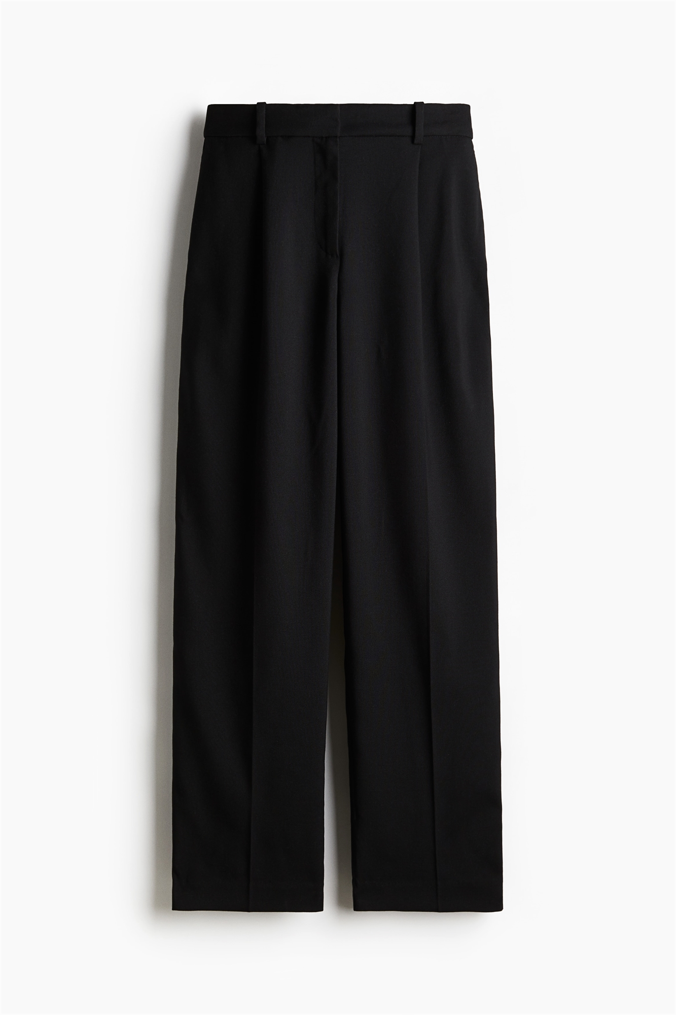Приталенные брюки из тканого материала с высокой талией и ширинкой на молнии с потайной пуговицей и застежкой на крючок и планку. Неприметные боковые карманы, задние карманы на пуговице и аккуратно зауженные ноги со складками спереди и складками спереди и сзади.