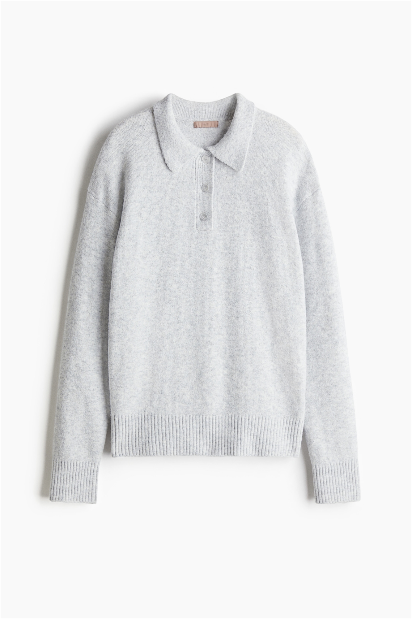 Джемпер свободного покроя из мягкого тонкого трикотажа с воротником-стойкой, застежкой на пуговицы, спущенными плечами и длинными рукавами. Ребристые манжеты и подол.