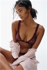 Мягкий бюстгальтер без проводов из кружева с регулируемыми бретелями и чашечками без подкладки, которые придают бюсту естественную форму и обеспечивают легкую поддержку. Застежка на крючки и глазки сзади.