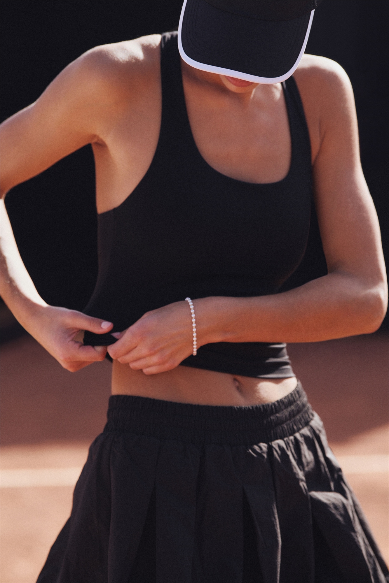 Теннисная юбка из функциональной ткани DryMove™, которая отводит влагу от кожи, обеспечивая комфортную сухость во время движения. Юбка надевается поверх трикотажных трусов с карманом для мяча на одной штанине и карманом для телефона на другой штанине. Регулярная талия с утяжкой и подол с пузырями.
