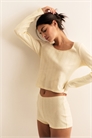 Облегающая пижама с топом и шортами из мягкого хлопкового пуантельевого джерси с отделкой пико и декоративными атласными бантиками. Топ с длинными рукавами и вырезом "совок" и мини-шорты с эластичной талией.