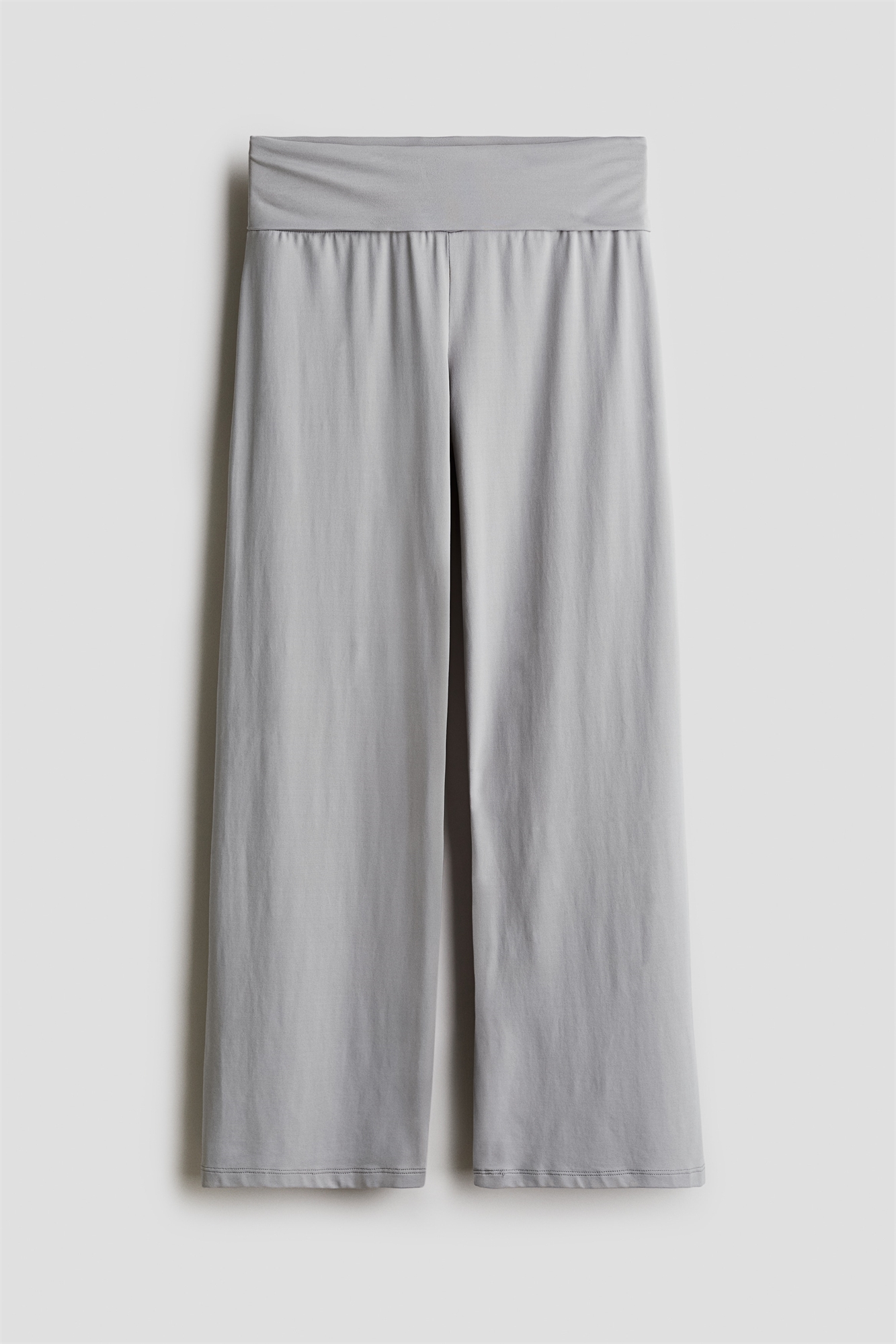 Брюки из мягкого трикотажа с отложным поясом и широкими штанинами.