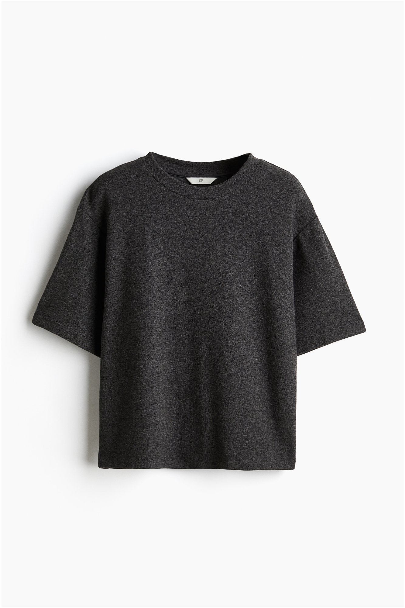 Свободная футболка из мягкого тонкого трикотажа с узкой окантовкой по вырезу горловины и спущенными плечами.