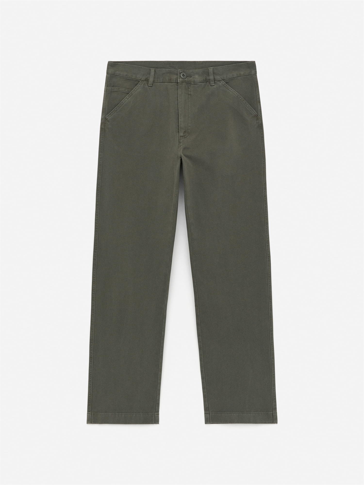 Брюки с 5 карманами из хлопковой саржи. Покрой обычный. Спереди - косые карманы и карман для монет, сзади - накладные карманы. Петли для ремня.