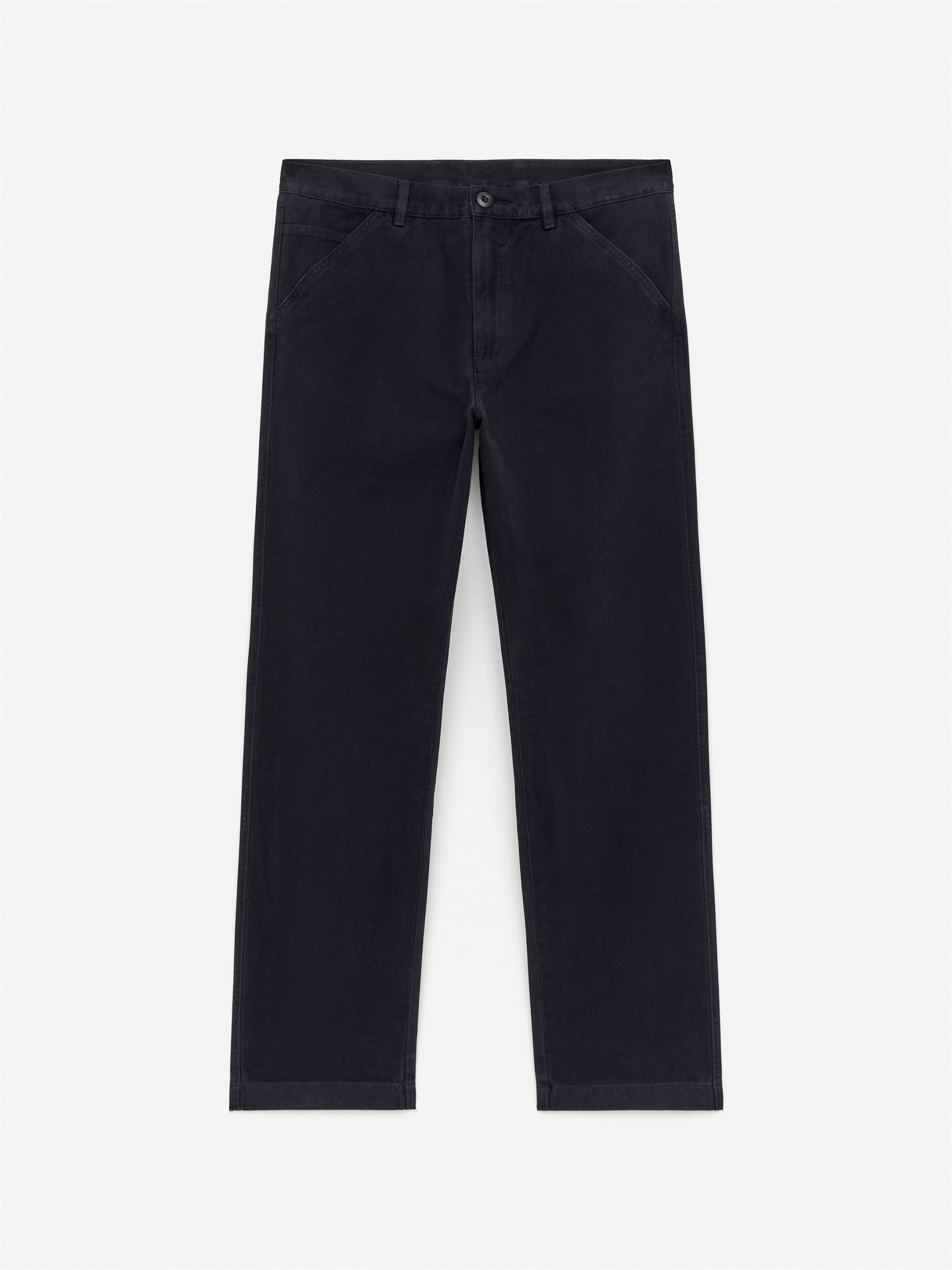 Брюки с 5 карманами из хлопковой саржи. Покрой обычный. Спереди - косые карманы и карман для монет, сзади - накладные карманы. Петли для ремня.