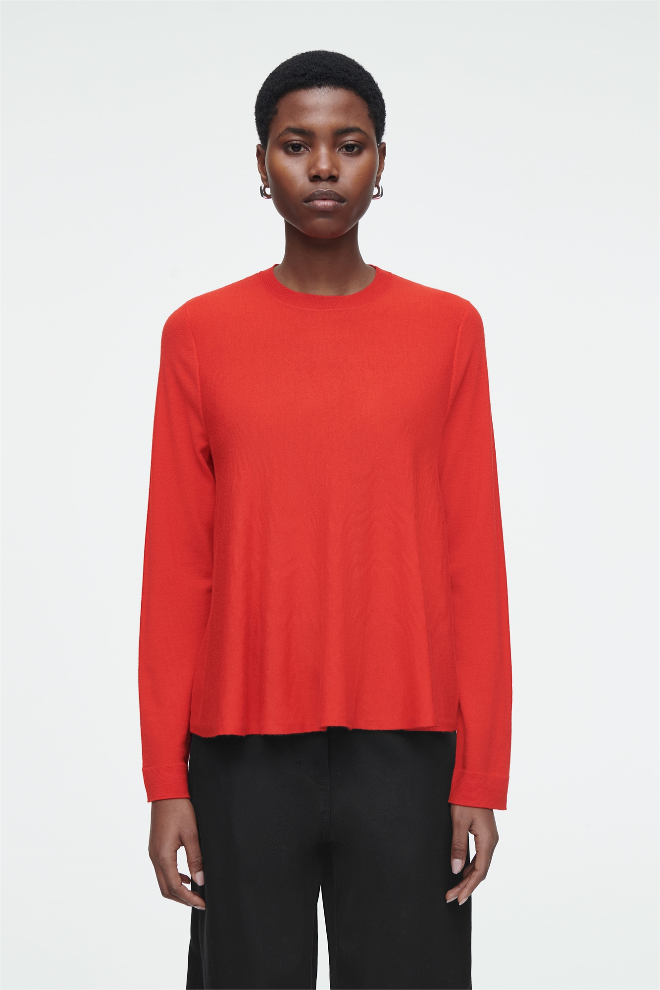 В этом сезоне команда женской одежды переосмысливает предметы гардероба с помощью современных форм и продуманных тканей. Этот джемпер, выполненный в смелом красном цвете, вяжется из ультрамягкой мериносовой шерсти и имеет силуэт трапеции, придающий объем. В остальном он остается классическим благодаря горловине и длинным рукавам. Регулярный крой Этот продукт содержит шерстяное волокно Responsible Wool Standard TE-00047206 (RWS) с ферм, сертифицированных в соответствии с требованиями к благополучию животных и землепользованию Шелл: 100% мериносовая шерсть. Без учета отделки / Машинная стирка Длина по спинке для размера S составляет 64 см / Модель носит размер S