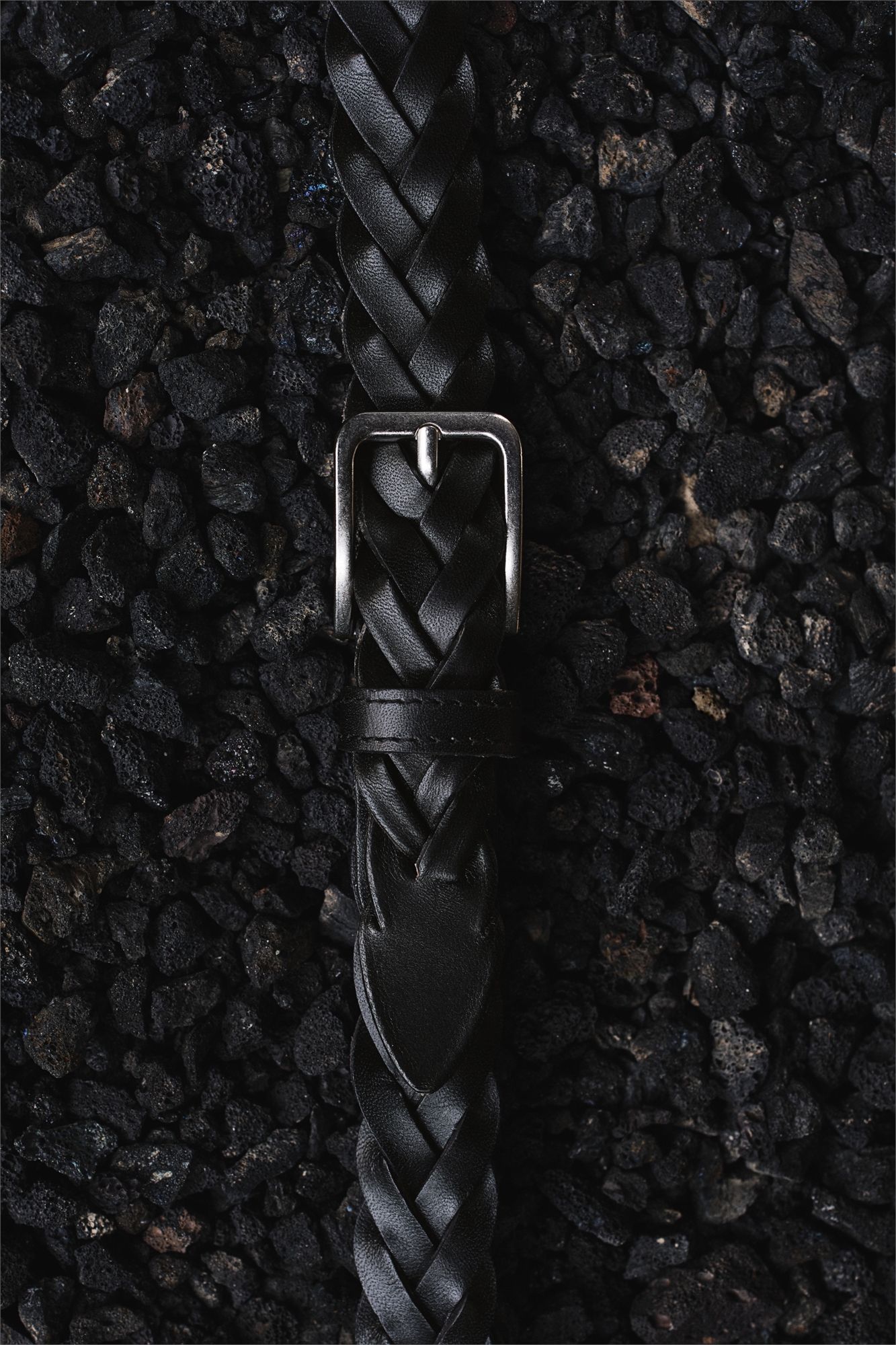 Ремень из плетеной кожи с металлической пряжкой. Ширина 2,4 см.