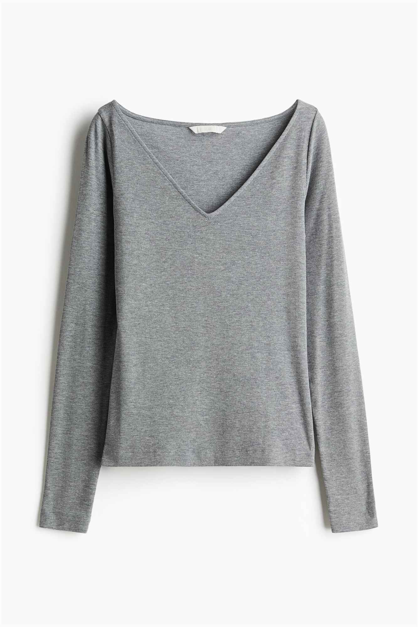 Облегающий топ из мягкого тонкого трикотажа из смеси хлопка. Широкий V-образный вырез, длинные рукава и прямой подол.