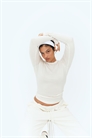 Облегающий топ из мягкого хлопкового джерси с круглым вырезом и удлиненными рукавами.