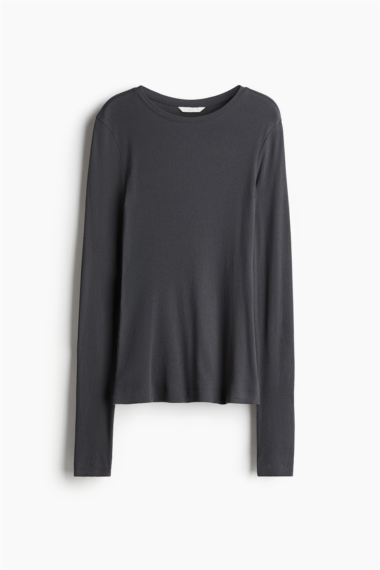 Облегающий топ из ребристого хлопкового джерси с круглым вырезом и удлиненными рукавами.