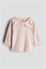 Топ из ребристого хлопкового джерси, украшенный сверху бантиком из хлопкового поплина. Круглый вырез, застежка на пуговицу сзади и длинные рукава. Манжеты и подол отделаны оверлоком.