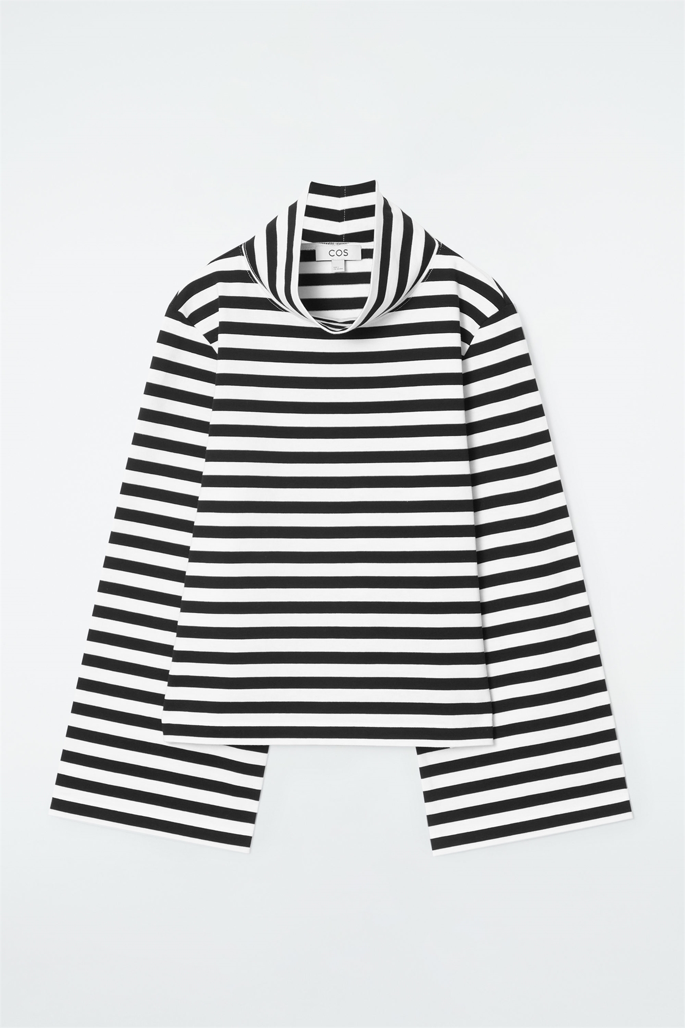 Этот классический топ с длинными рукавами имеет воронкообразную горловину и широкие рукава. Он изготовлен из мягкого хлопка-джерси и украшен полосками в бретонском стиле. Регулярный крой Оболочка: 100% хлопок. Без учета отделки / Машинная стирка Длина по спинке для размера S составляет 67 см / Модель носит размер S