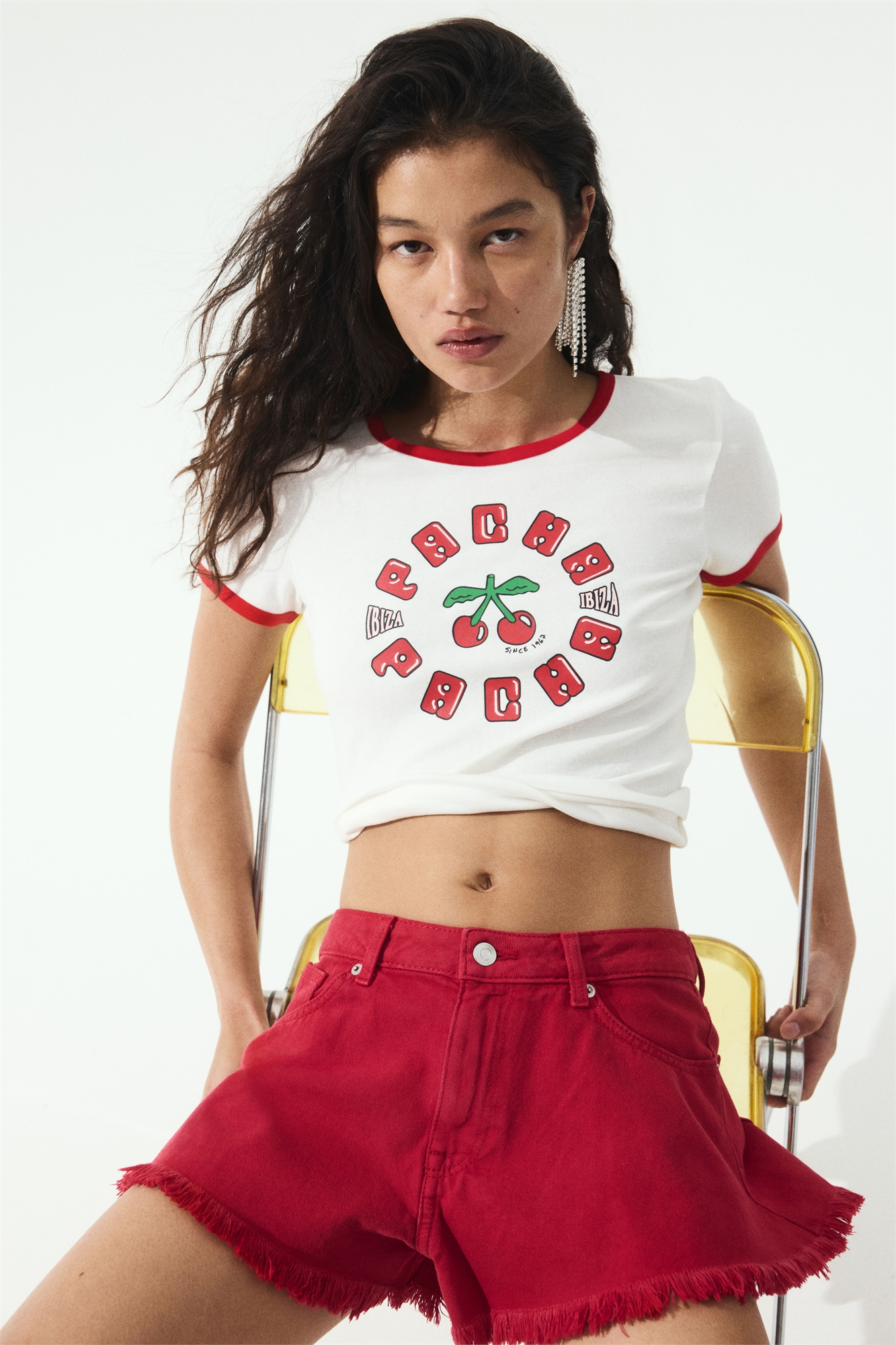 Свободные шорты с 5 карманами из жесткого хлопкового денима с высокой талией, ширинкой на молнии и пуговице и обтрепанными краями по краям.