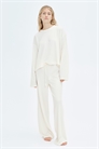 Пижама с верхом и низом из вафельного трикотажа. Верхняя часть с круглым вырезом, спущенными плечами и длинными рукавами. Низ с эластичным утягивающим поясом и прямыми ногами.