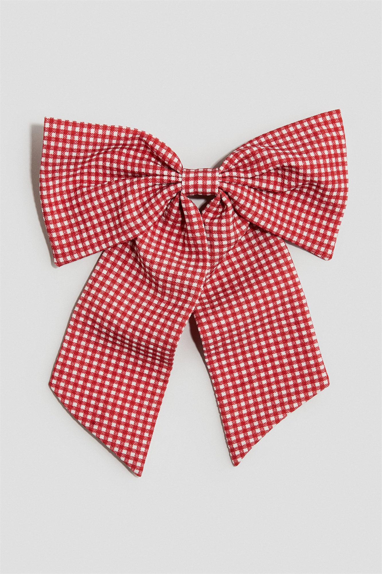 Металлическая заколка для волос, украшенная большим бантом из мягкого набивного плетения с длинными лентами.