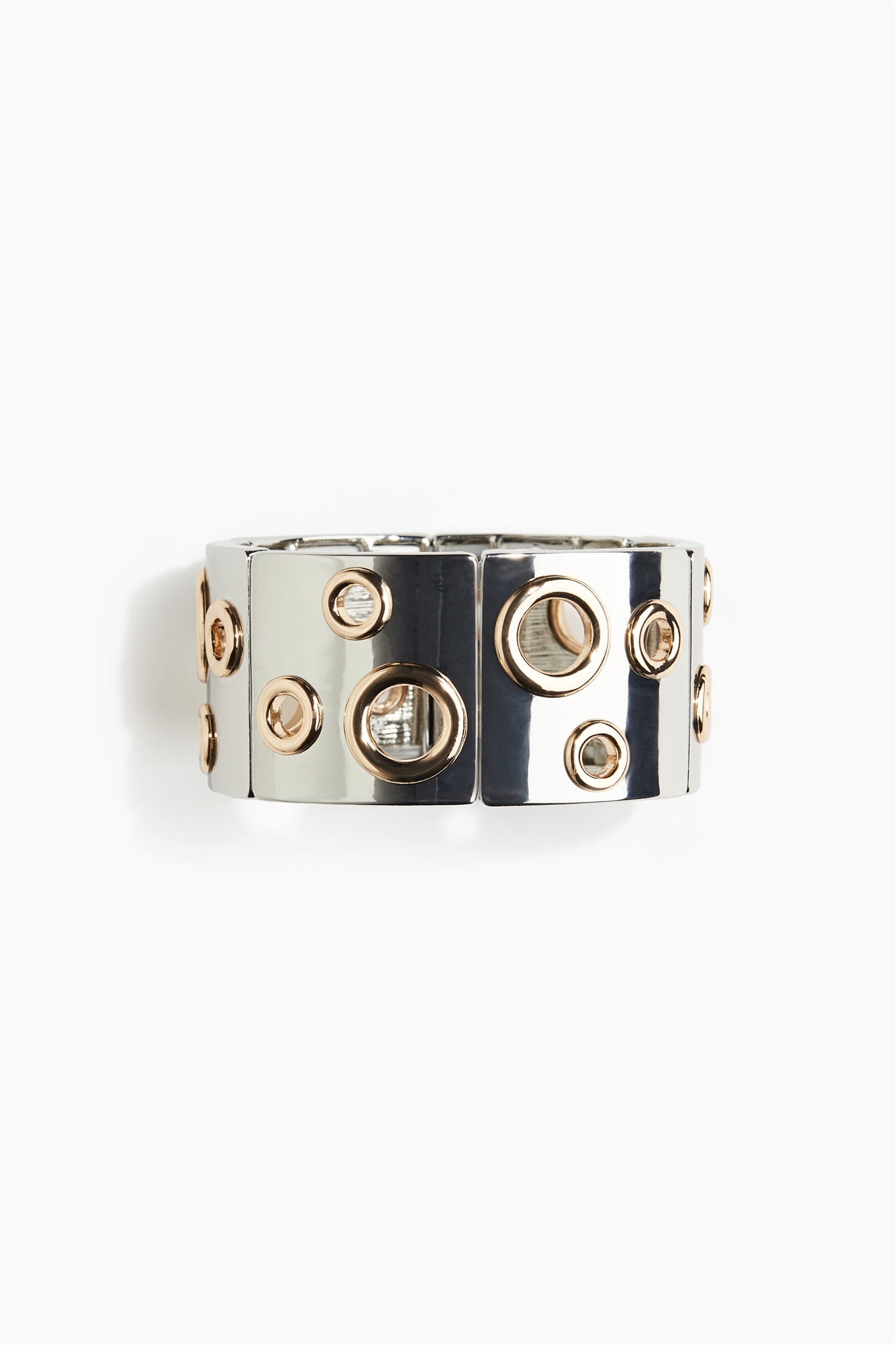 Широкий эластичный браслет-манжета из металла с люверсами акцентного цвета. Ширина 3,5 см.