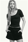 Приталенная футболка из узкого ребристого хлопкового джерси с глубоким круглым вырезом и прямым покроем.