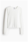 Короткий приталенный топ из эластичного трикотажа с круглым вырезом и длинными рукавами.
