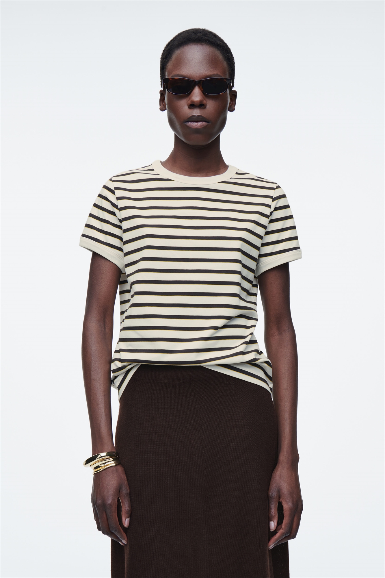 Эта полосатая футболка в полоску в стиле "80-х" выполнена в уменьшенном размере и облегает тело. Она сшита из ультрамягкого хлопка, имеет горловину и короткие рукава с контрастной отделкой. Наши стилисты предлагают сочетать ее с джинсами. Облегающий крой, 196gsm Шелл: 91% хлопка, 9% эластана. Воротник: 100% хлопок. Без учета отделки / Машинная стирка Длина спины размера S составляет 58,2 см / Модель носит размер S