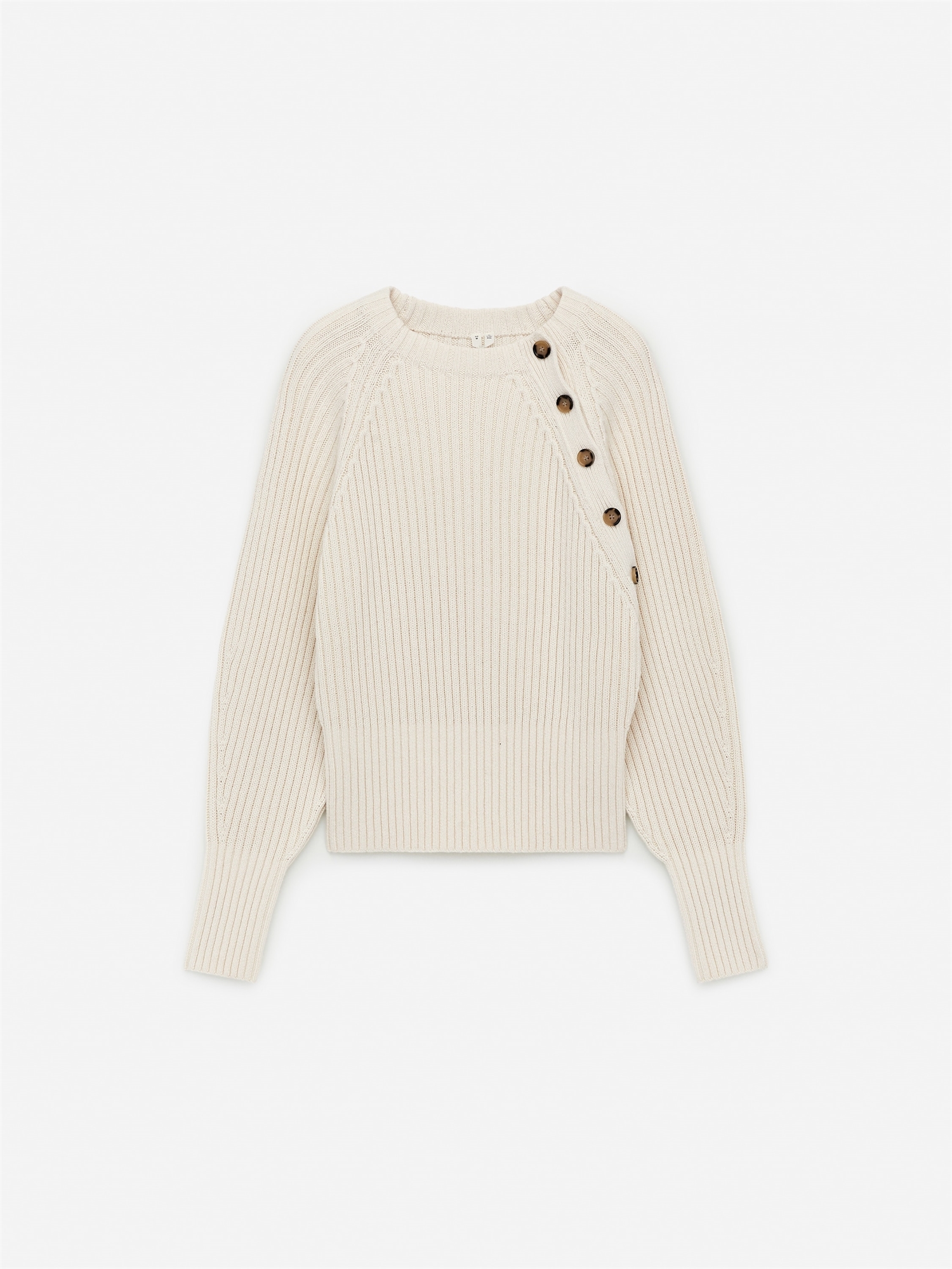 Вязаный джемпер из смеси хлопка и шерсти. Джемпер с рукавами реглан и пуговицами на левой стороне. Джемпер содержит 25% шерсти RWS (TE-00047206). Продукция, сертифицированная по стандарту ответственной шерсти (RWS), содержит шерстяное волокно с ферм, прошедших независимую сертификацию на соответствие требованиям по благополучию животных и землепользованию.