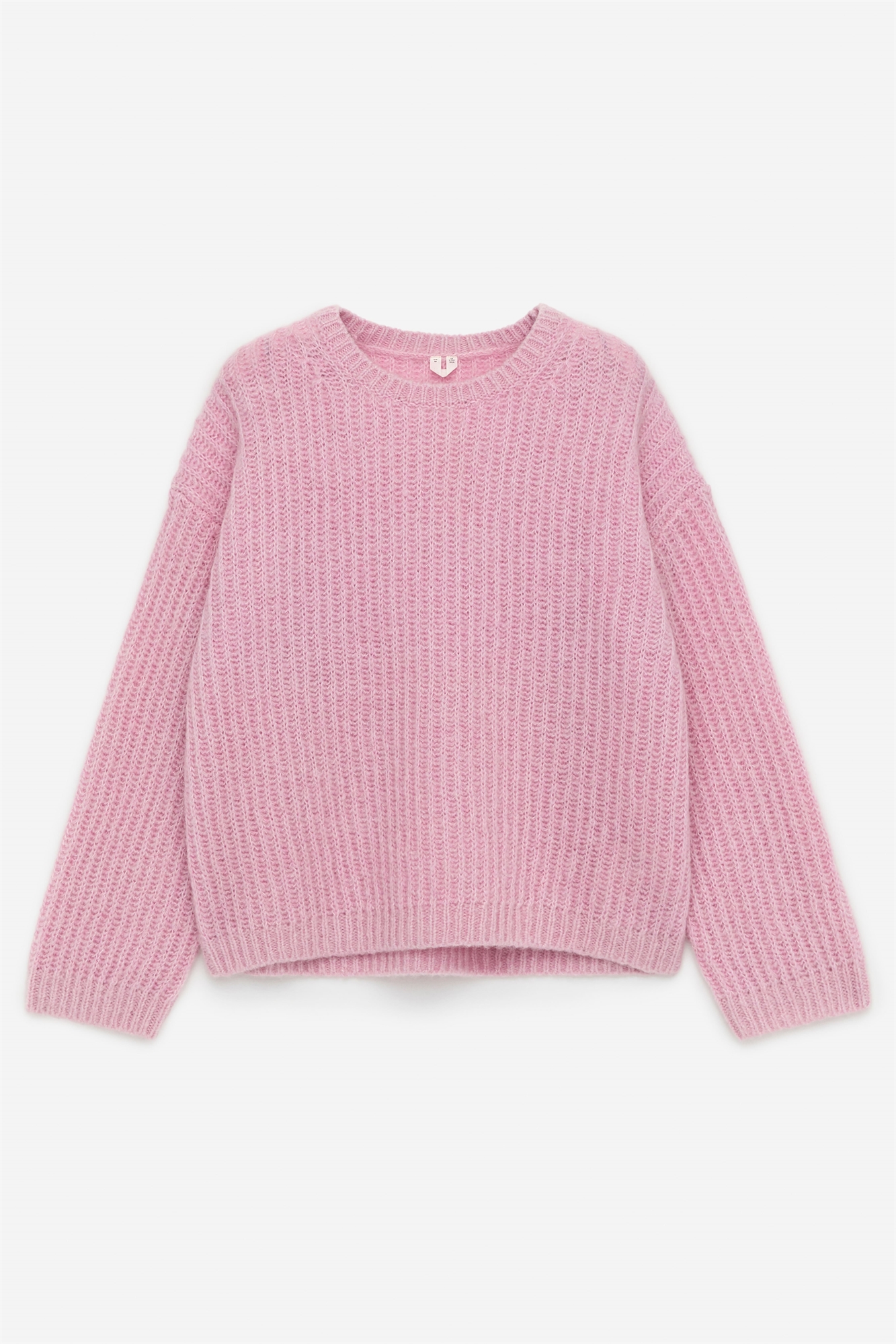 Джемпер из смеси шерсти и мохера. Ребристая отделка и свободный крой. Этот фасон содержит 23% мохера RMS и 61% шерсти RWS (TE-00047206). Продукция, сертифицированная по стандартам Responsible Wool Standard (RWS) и Responsible Mohair Standard (RMS), содержит шерсть и мохер с ферм, прошедших независимую сертификацию на соответствие требованиям по благополучию животных и землепользованию.