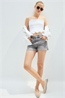Шорты с 5 карманами из жесткого хлопкового денима с высокой талией, застежкой на молнию и пуговицу. Пришитые подвороты на подоле.